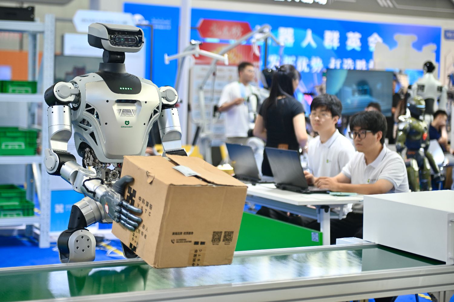 人形机器人执行搬运任务。中新社