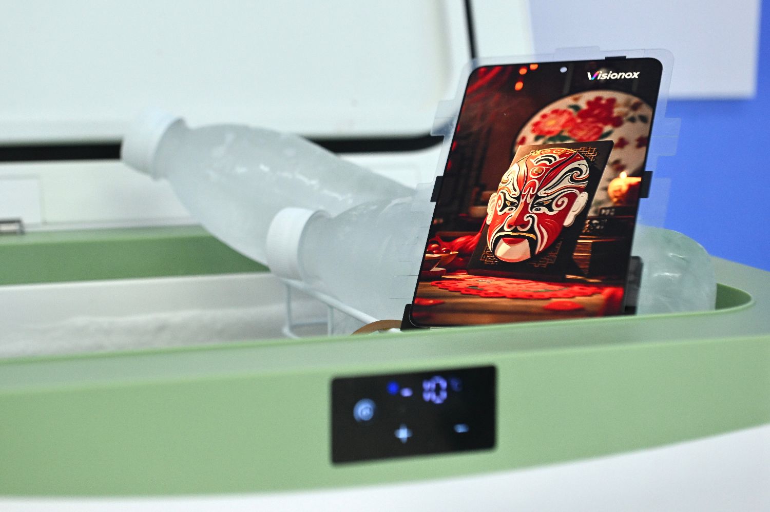 大会展出一款可以防水抗寒的显示屏。中新社