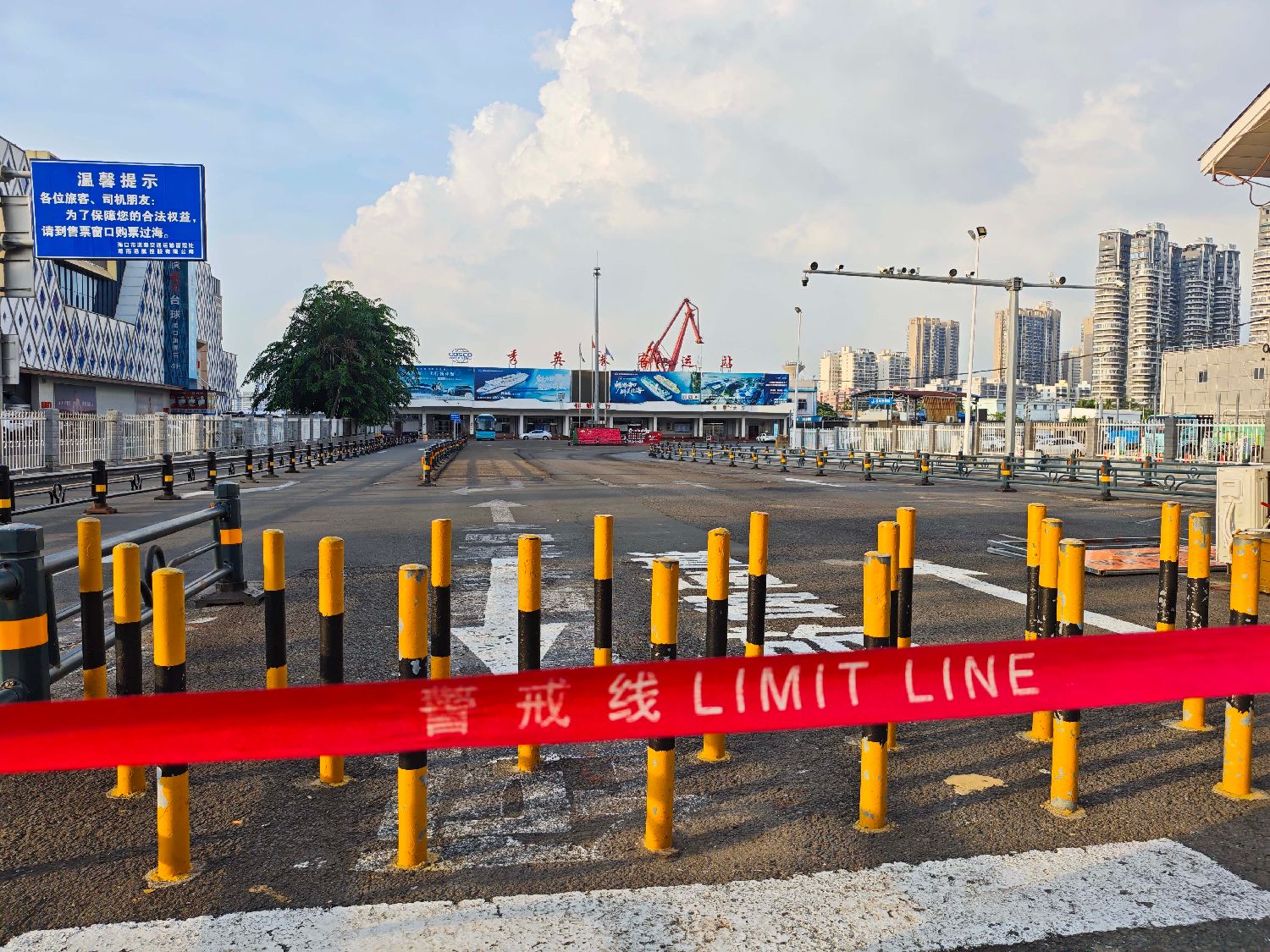 北京时间23日18时,中央气象台继续发布台风橙色预警,预计今年第18号台风“桦加沙”将正面登陆粤西,极端性强、致灾风险高。气象专家表示,“桦加沙”带来风的影响将比雨的影响更极端,台风靠近广东海岸线后,路径偏西行为主,深圳、广州、香港、澳门、珠海等地沿海将经历9至10级狂风,靠近台风中心的局地最大阵风甚至可达17级。 9月23日,海口市交通运输和港航管理局发布通告,受台风“桦加沙”影响,琼州海峡航线已于18时起全线停运,预计停运将持续至9月25日晚上。图为海口秀英港入口处拉起警戒线。中新社