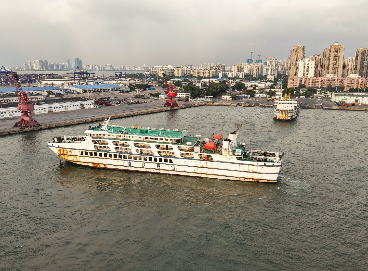 9月23日,海南海口秀英港,客滚船回港避风。中新社