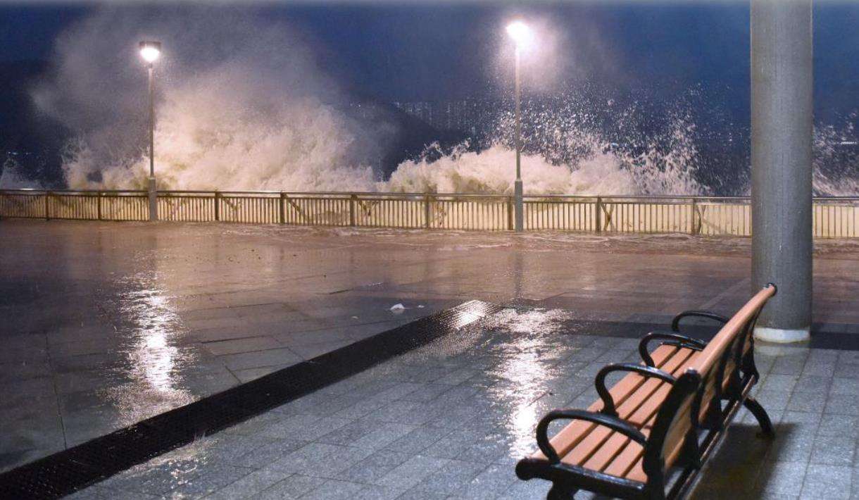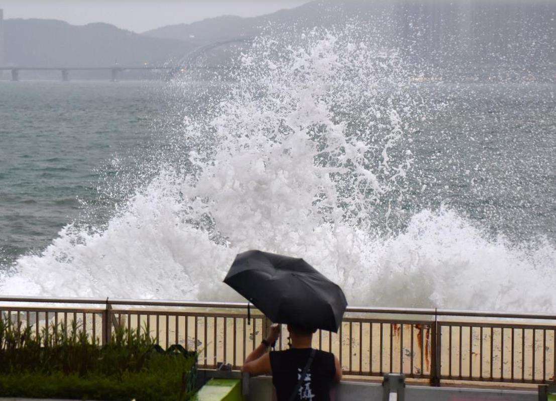 9月23日,海浪冲击香港柴湾杏花邨海岸。新华社