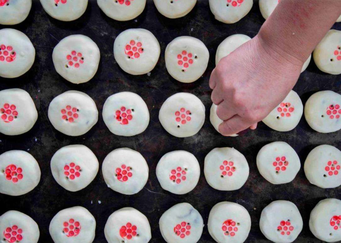 9月19日,河北省石家庄市藁城区九门回族乡黄庄村一家月饼生产企业车间,工人赶制手工月饼。该村以生产月饼闻名,目前83家月饼生产企业日产月饼约150吨,这些月饼将销往中国各地。中新社