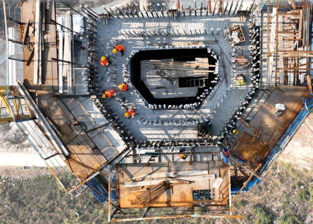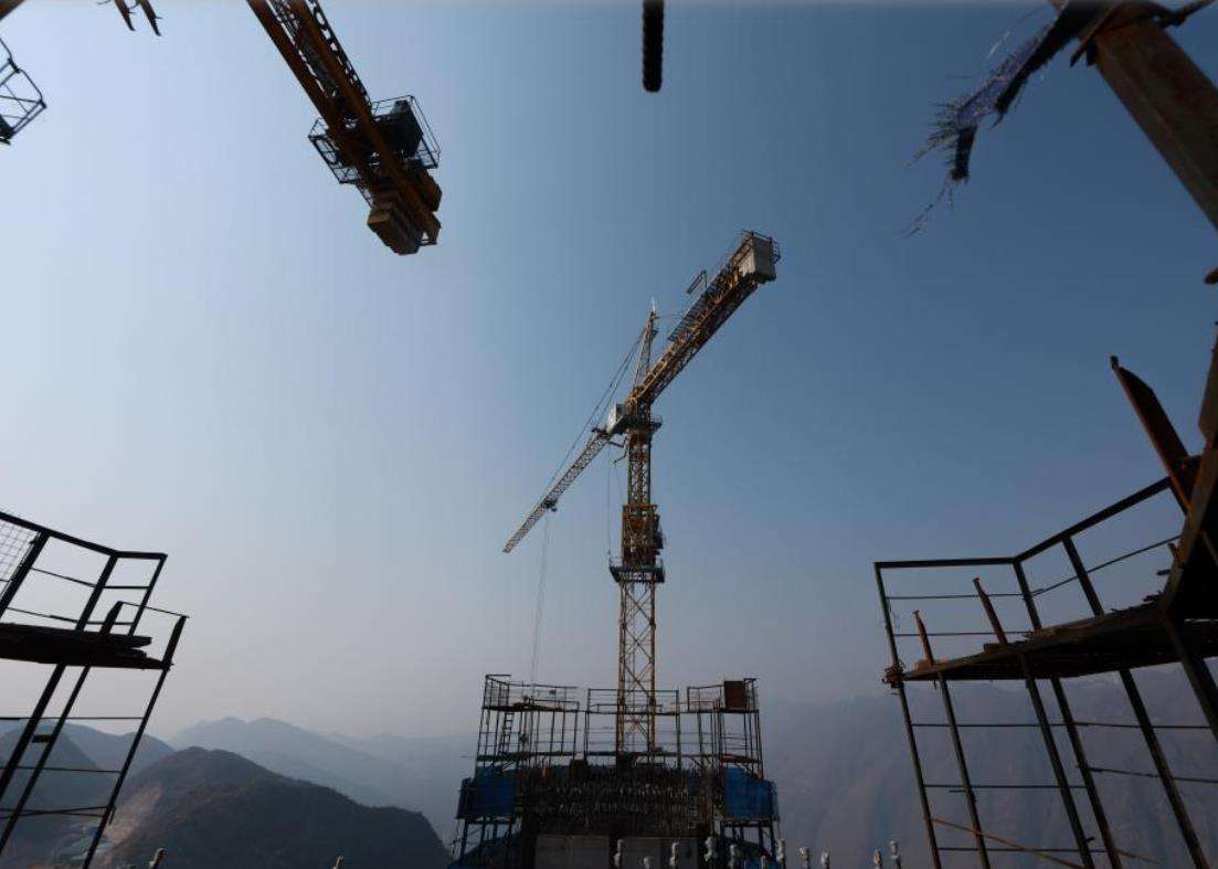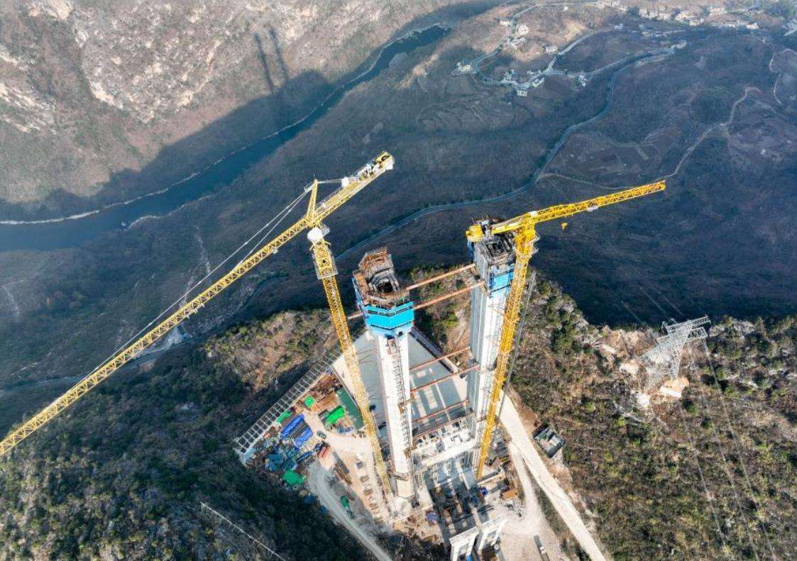 2023年2月1日,贵州花江峡谷大桥主塔施工现场。新华社