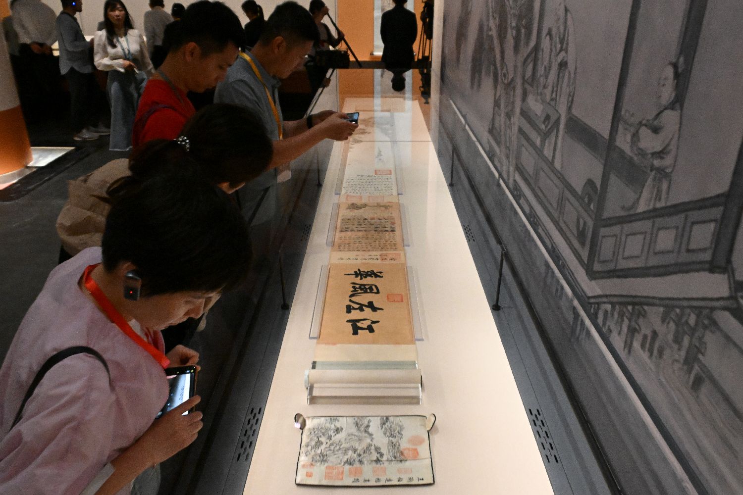 9月29日,“百年守护——从紫禁城到故宫博物院”展览在北京故宫博物院午门展厅展出。展览分为“一脉文渊”“百年传承”“万千气象”三个单元,展出文物200件(套),立体式阐释中华文明具有的突出的连续性、创新性、统一性、包容性、和平性,全方位展现故宫博物院从萌芽诞生到曲折成长,从步履维艰到阔步前行,从探寻求索到锐意创新的发展历程。展览展期为2025年9月30日至12月30日。图为观众观看、拍摄晋代王珣的《伯远帖卷》。中新社