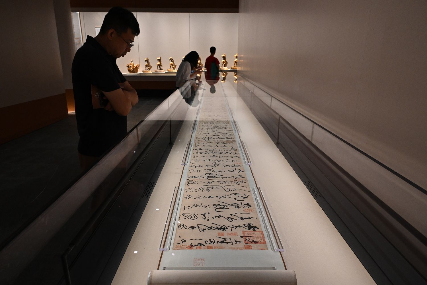 参观者观看北宋黄庭坚的《诸上座帖卷》。中新社