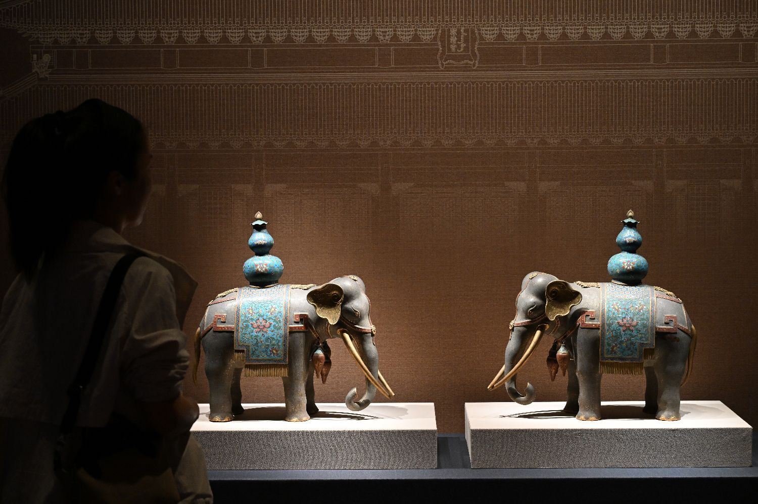 参观者观看清代掐丝珐琅太平有象。中新社
