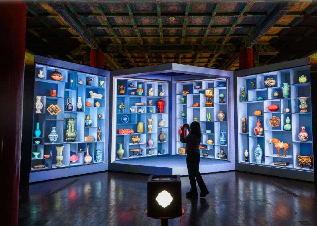 9月29日,观众参观“遇见你的故宫色”裸眼3D数字展。新华社
