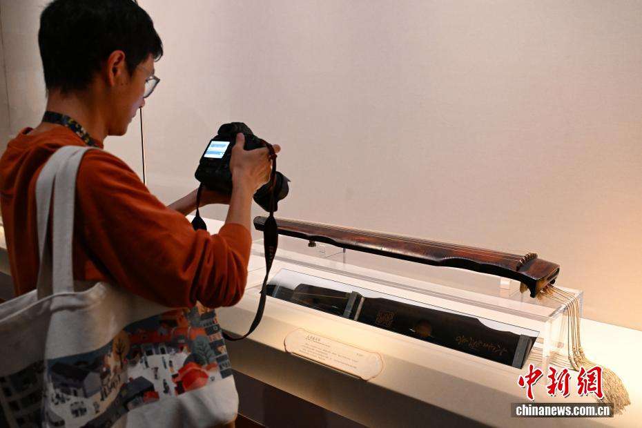 9月29日,参观者在拍摄唐代的《大圣遗音琴》。中新网