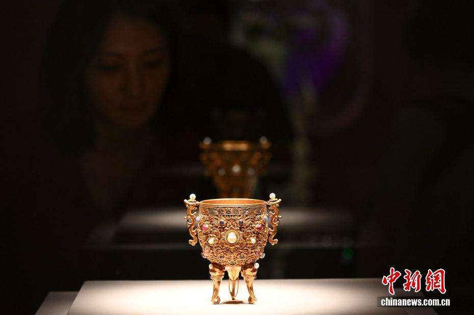 参观者在观看清代《金瓯永固杯》。中新网