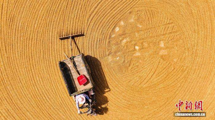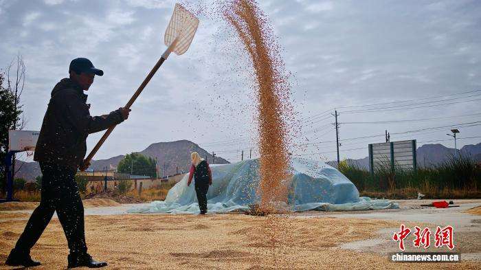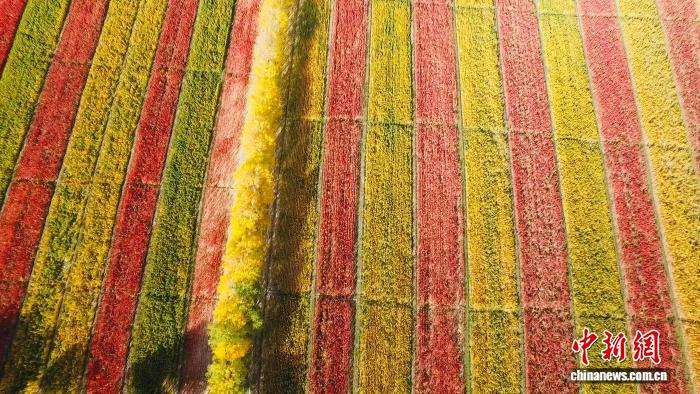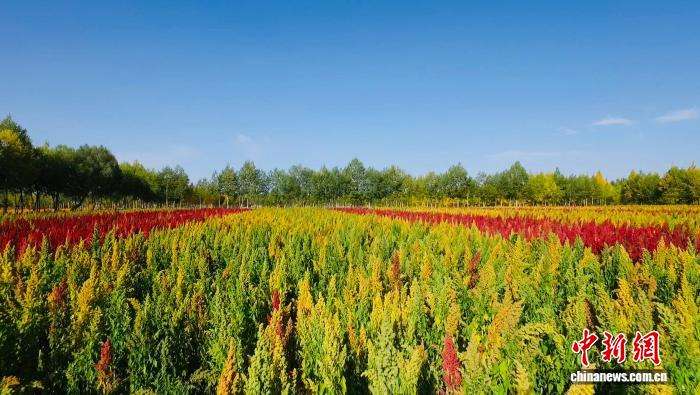 金秋9月,作为柴达木盆地的农牧业大县和重要的产粮大县,青海省海西州都兰县迎来丰收季。在田间地头,麦田阡陌纵横,金色麦浪翻滚,枸杞鲜果飘红,构成了一幅丰收图景。图为五彩藜麦。