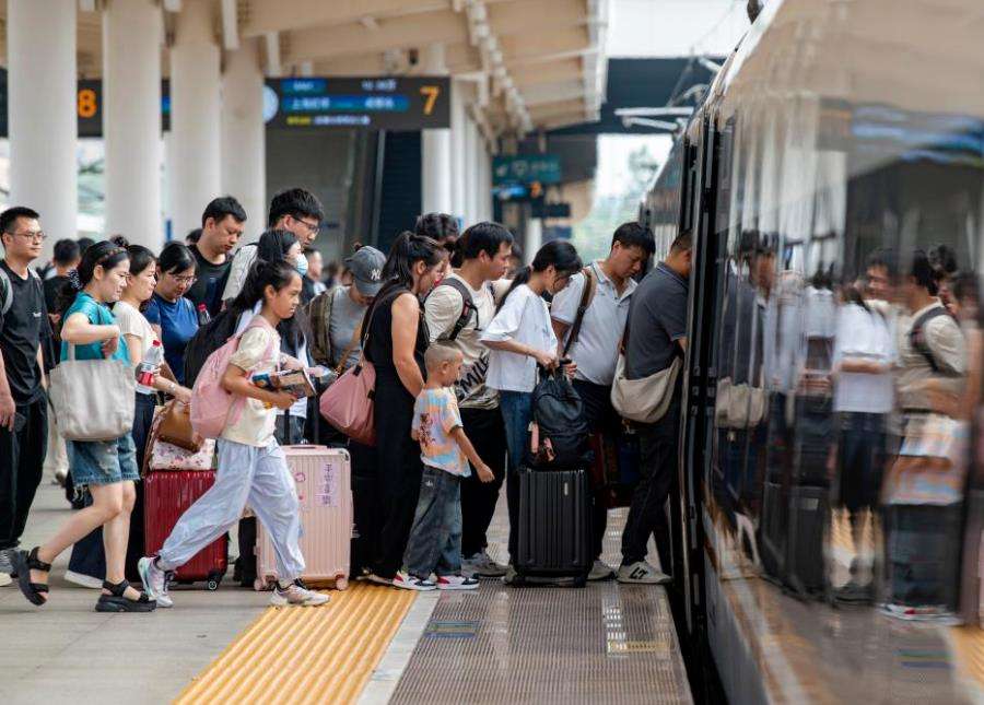 9月29日,旅客在浙江金华站有序乘车。新华社