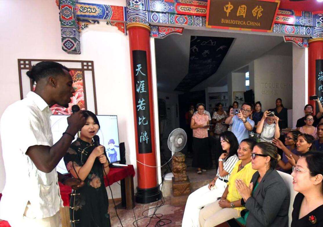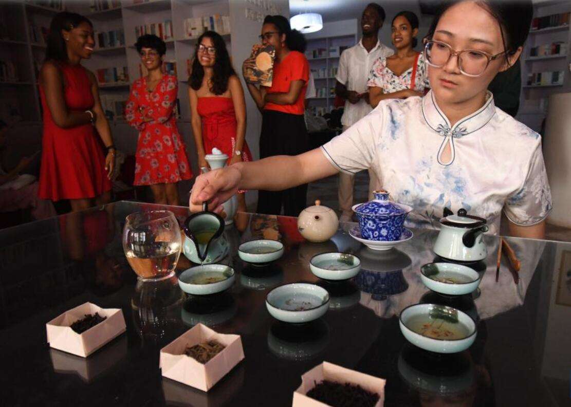 哈瓦那大学孔子学院学生在“茶和天下·雅集”活动中表演节目。