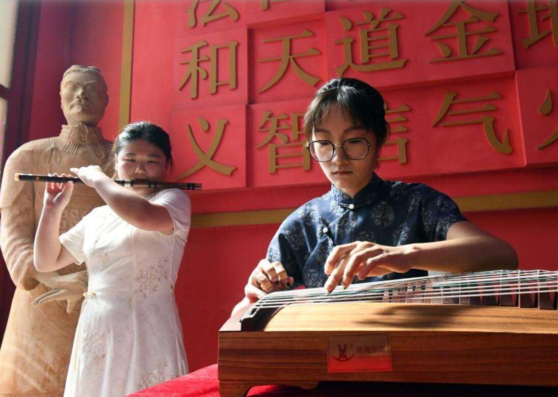 哈瓦那大学孔子学院的两名中国教师在“茶和天下·雅集”活动中演奏乐曲。