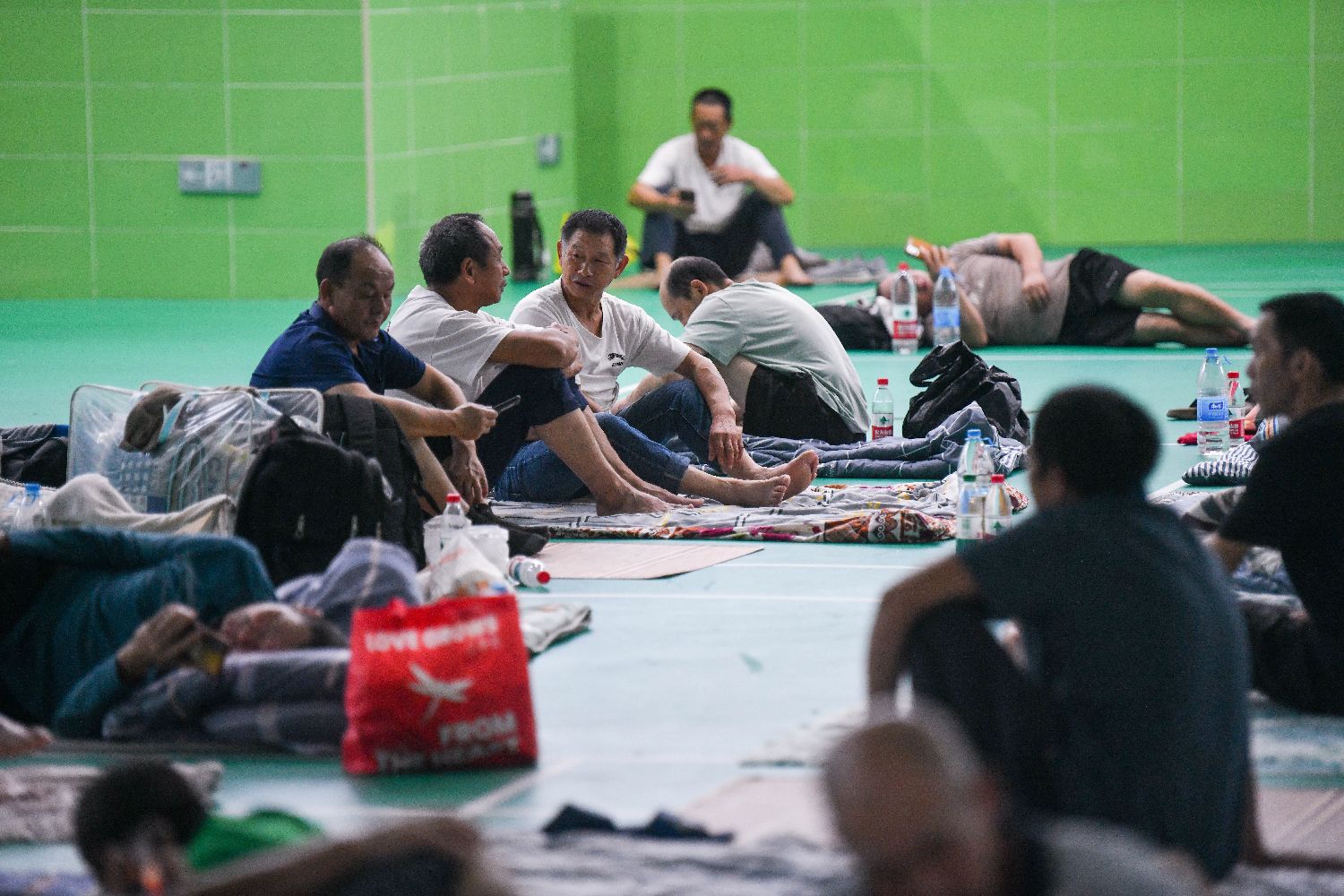 10月5日,民众在海南海口金宇学校临时安置点休息。当日,今年第21号台风“麦德姆”在广东省湛江市徐闻县东部沿海登陆,海南省气象局继续发布台风一级预警。记者从海南省应急管理厅获悉,截至5日12时,海南全省应转移危险地区人员199484人,已转移197856人,待转移1628人。中新社