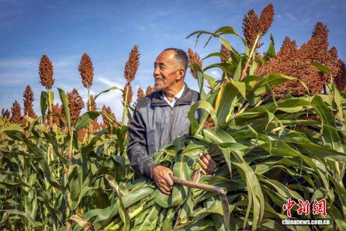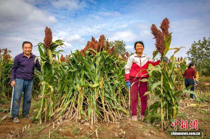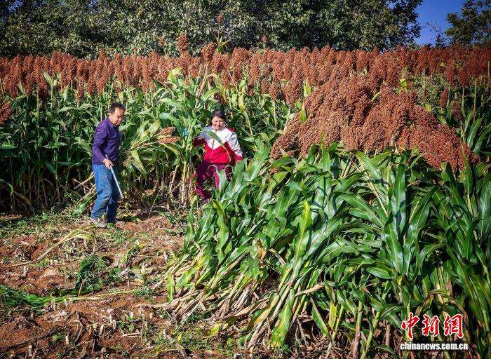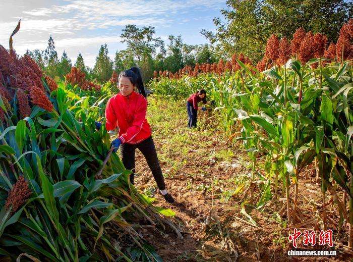 得益于良种推广与科学管护,红高粱已成为带动村民增收的“金色产业”,为乡村振兴注入新活力。图为村民正在收割高粱。
