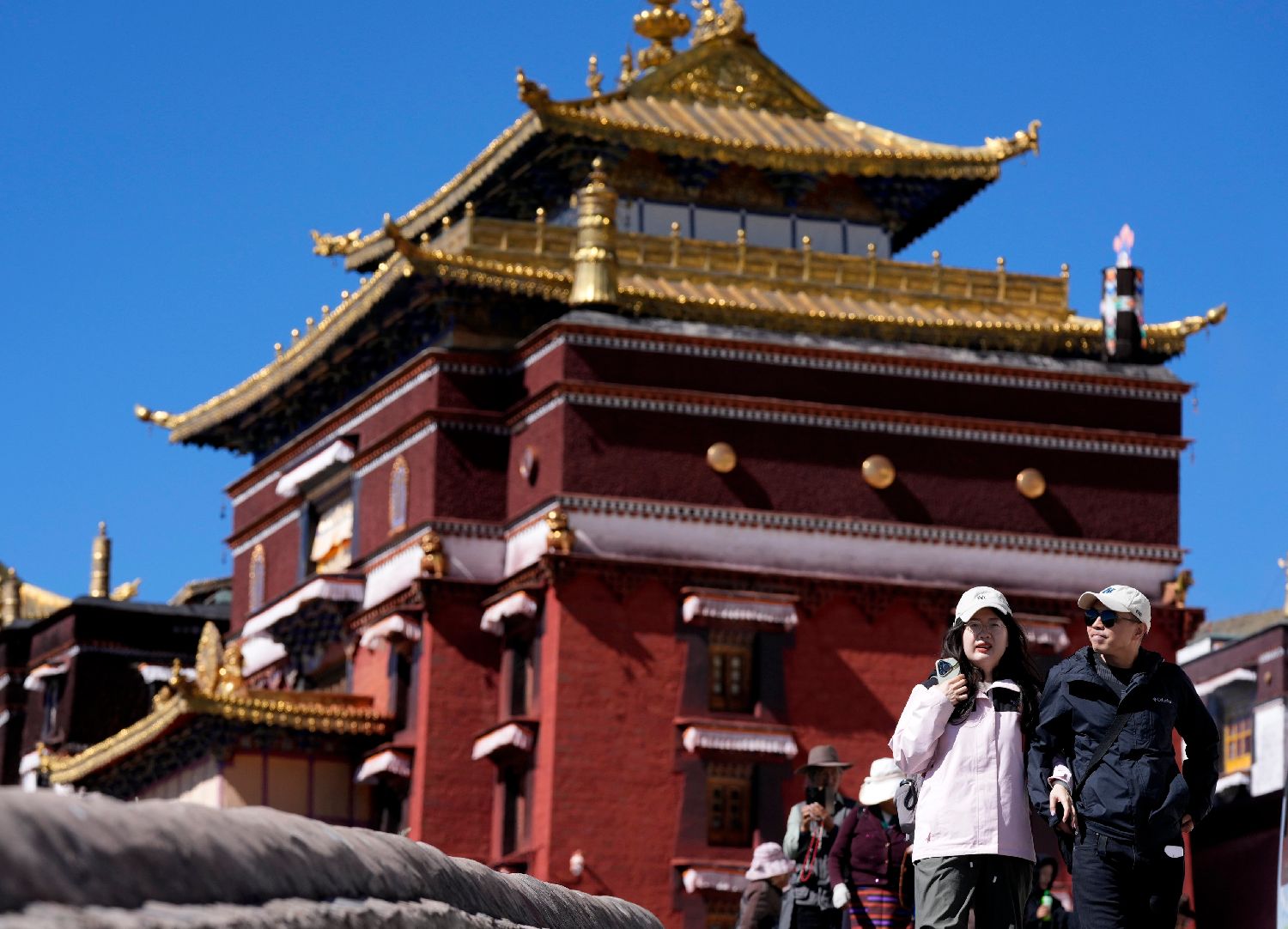 位于西藏日喀则市的扎什伦布寺始建于公元1447年,该景区是中国国家5A级旅游景区。凭借深厚的历史底蕴和独特的文化魅力,吸引众多中外游客参观游览。图为10月7日,游客在扎什伦布寺参观。中新社