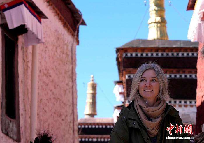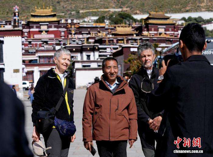 10月7日,海外游客在扎什伦布寺参观。中新网