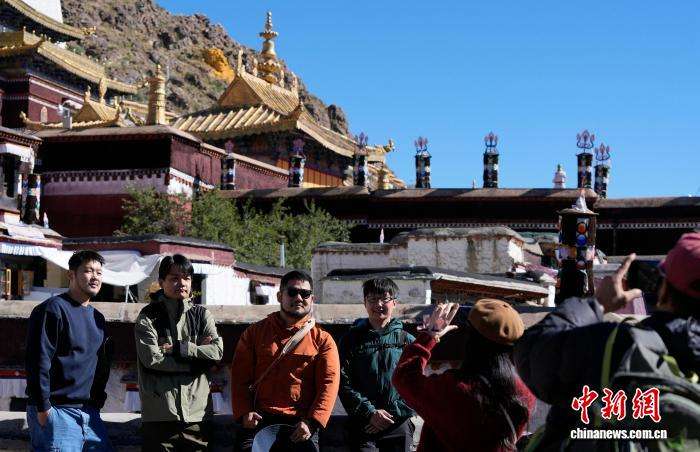 10月7日,游客在扎什伦布寺合影留念。中新网