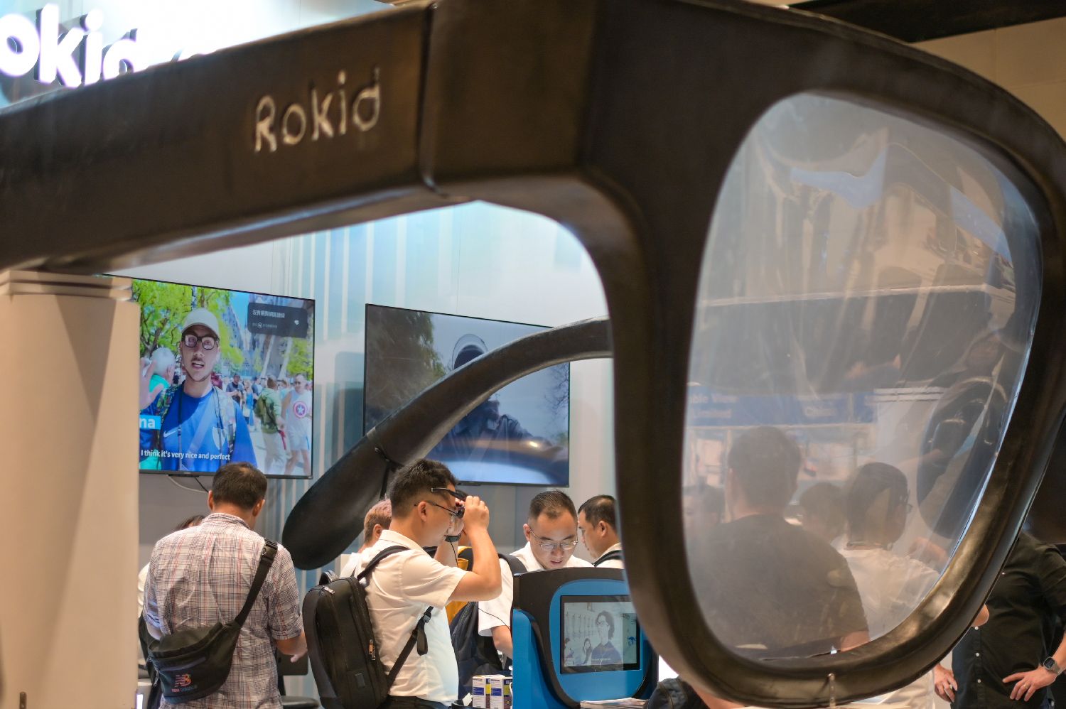 智能眼镜供应商的展位吸引买家参观。中新社