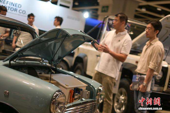 展商现场展示将传统车辆转为电动车的设备。中新网