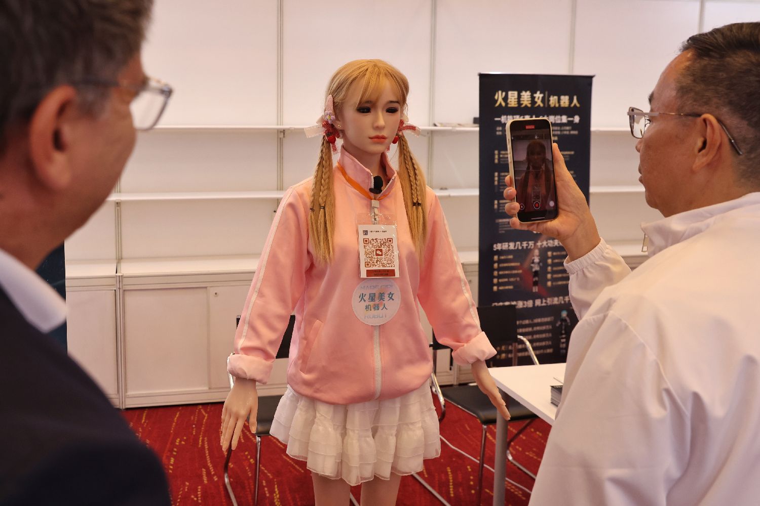 展位的仿真机器人吸引买家参观。香港中通社