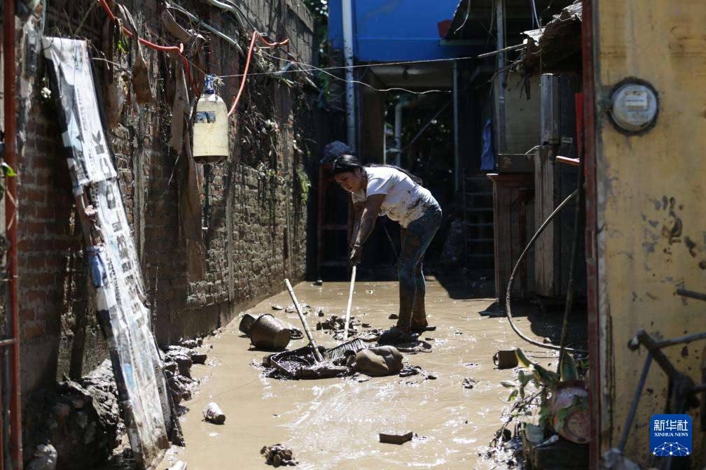 10月12日,在墨西哥韦拉克鲁斯州波萨里卡,一名女子清理房屋前的淤泥。
