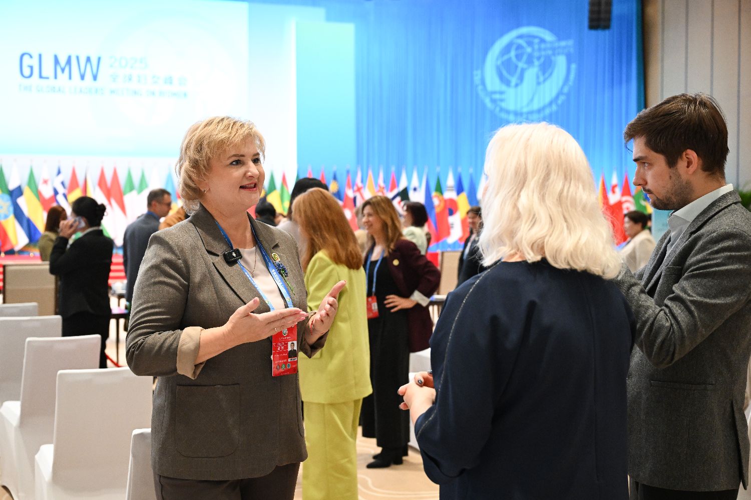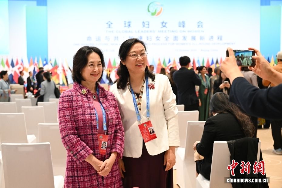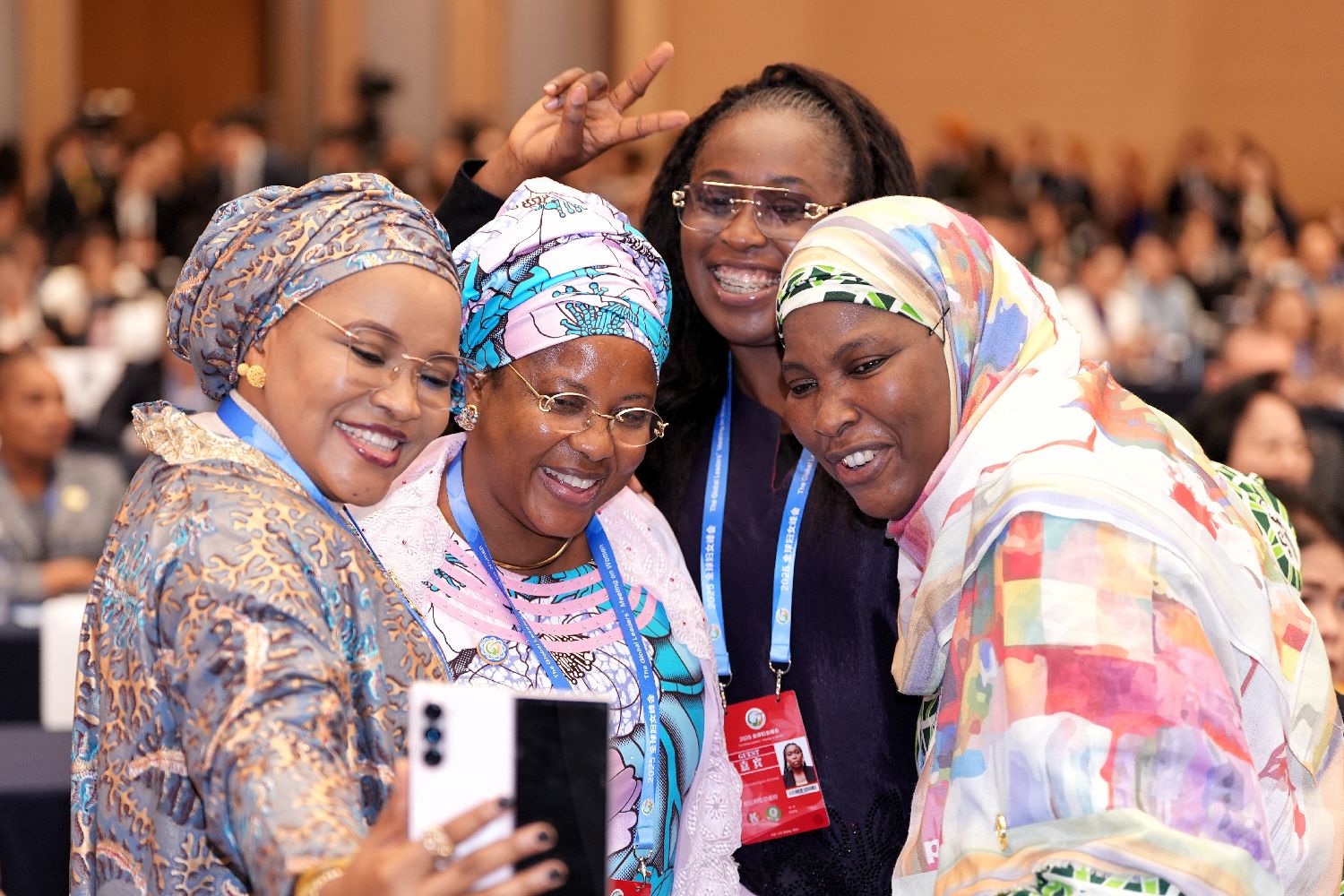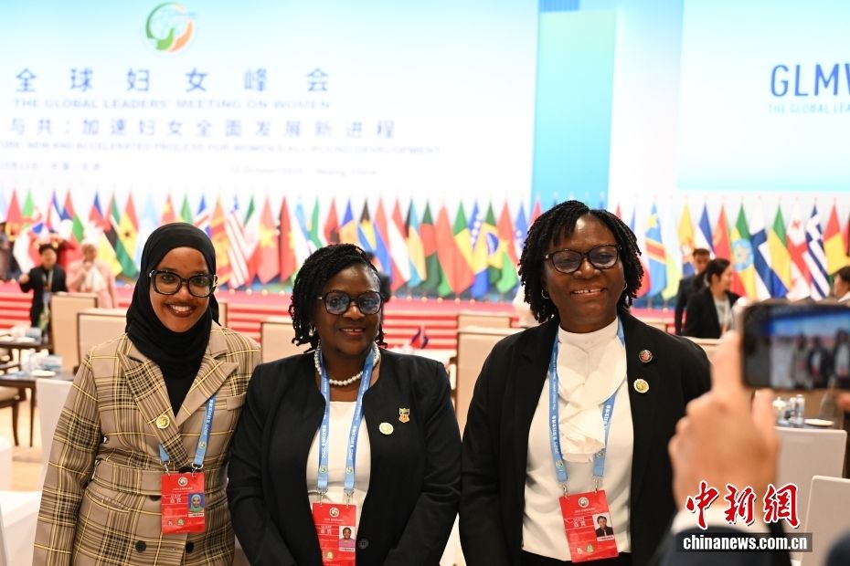 10月13日,全球妇女峰会全体会议在北京国家会议中心举行,主题为“命运与共:加速妇女全面发展新进程”。图为来自尼日利亚的嘉宾在会前自拍留念。中新社