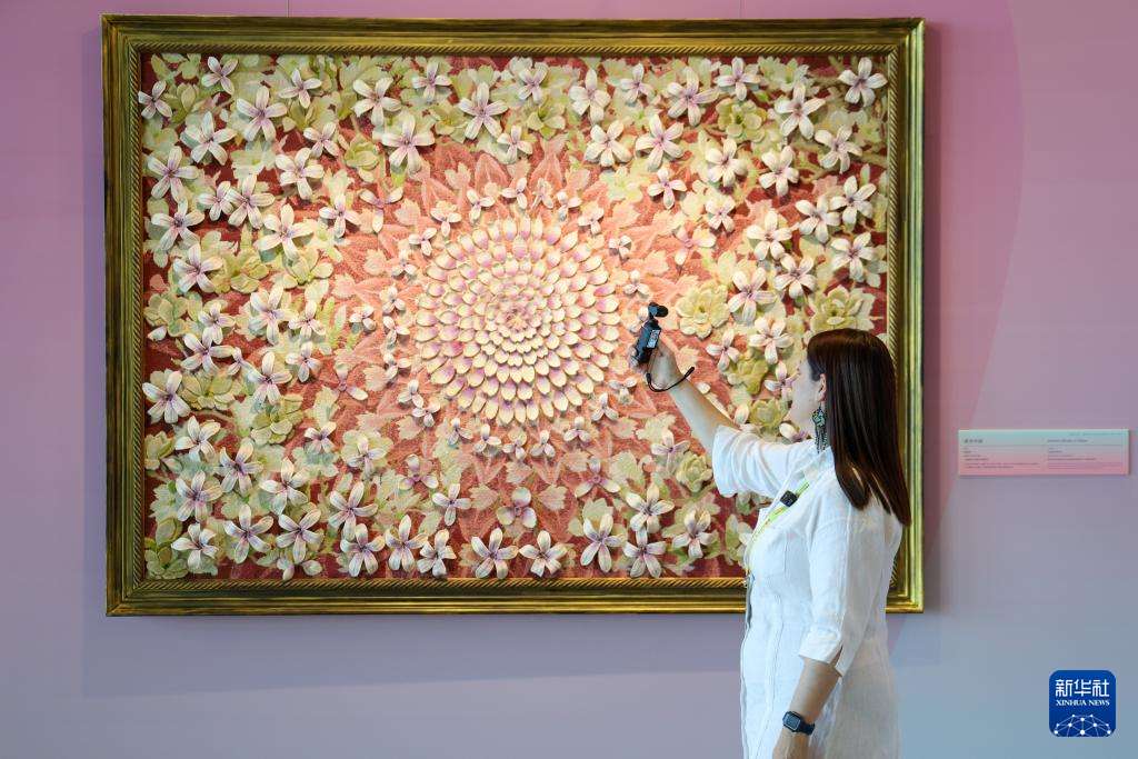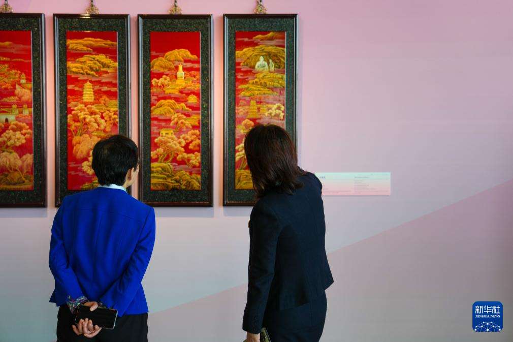 10月13日,参会嘉宾参观全球妇女峰会女性主题特展“华韵承芳·非遗共赏”。新华社