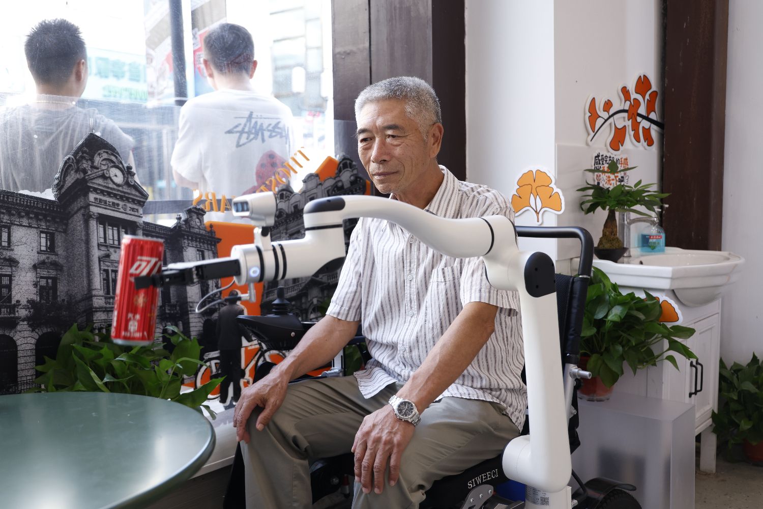 10月16日,2025年浙江省“敬老月”活动暨“浙条街那些年”银发街区启动仪式在杭州市举行。据悉,该街区以中山中路为示范场景,致力于打造一个集“可看、可玩、可购、可忆”于一体的沉浸式老年生活体验空间。图为老人通过智能康养机器人抓取物件。中新社
