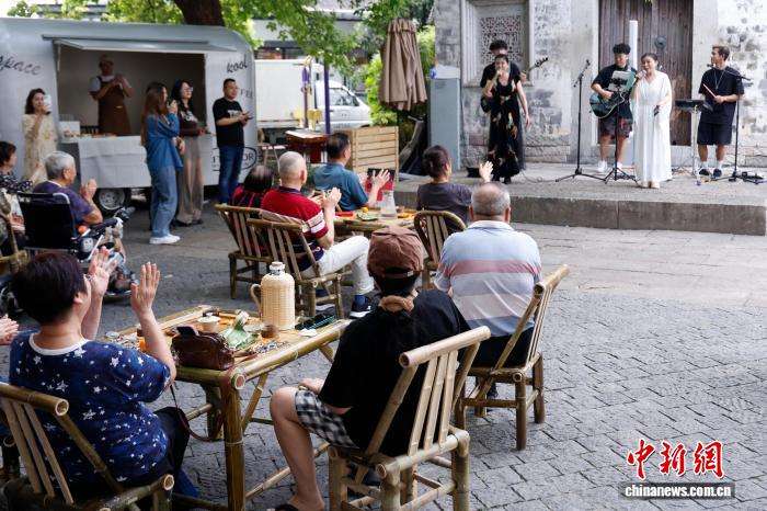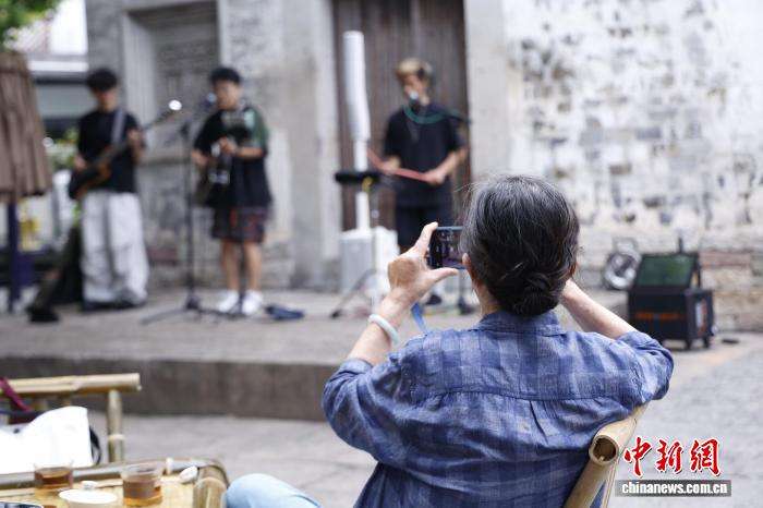 游人打卡乐队演出。中新网