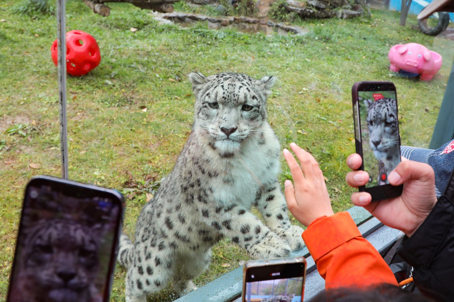 游客拍摄明星雪豹“凌小芒”。中新社