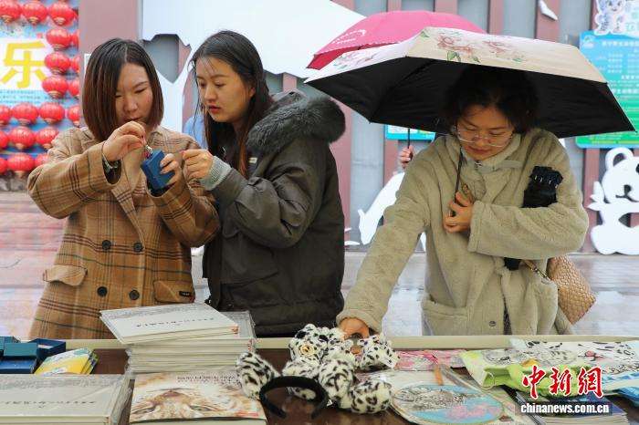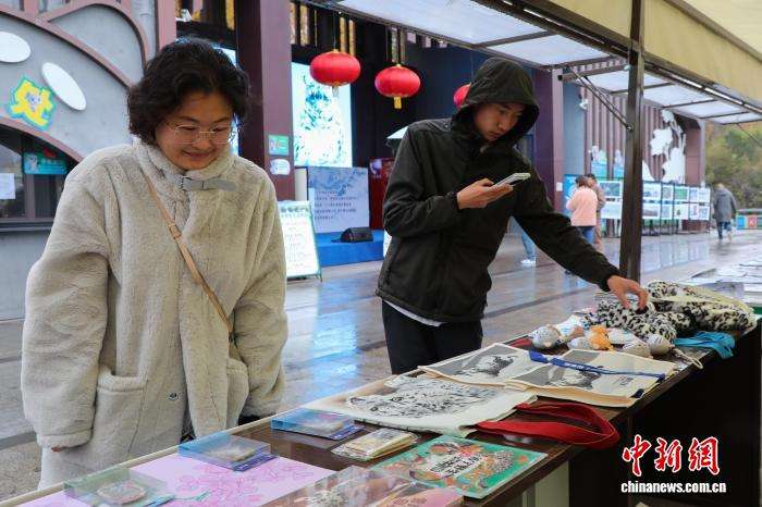 游客参观雪豹主题文创产品。中新网