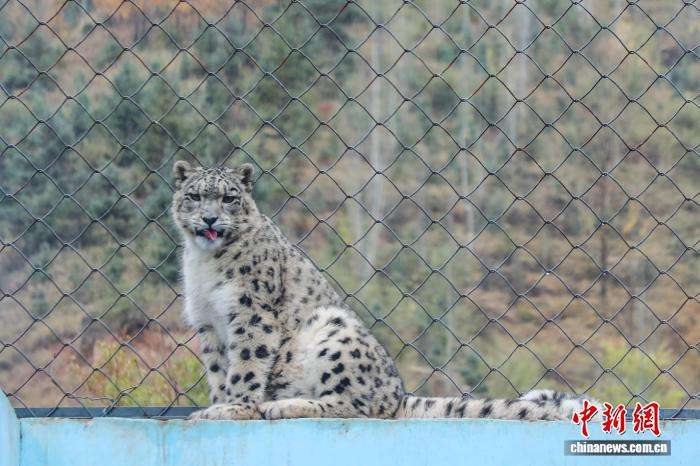 该园明星雪豹“凌小芒”吐舌卖萌。中新网