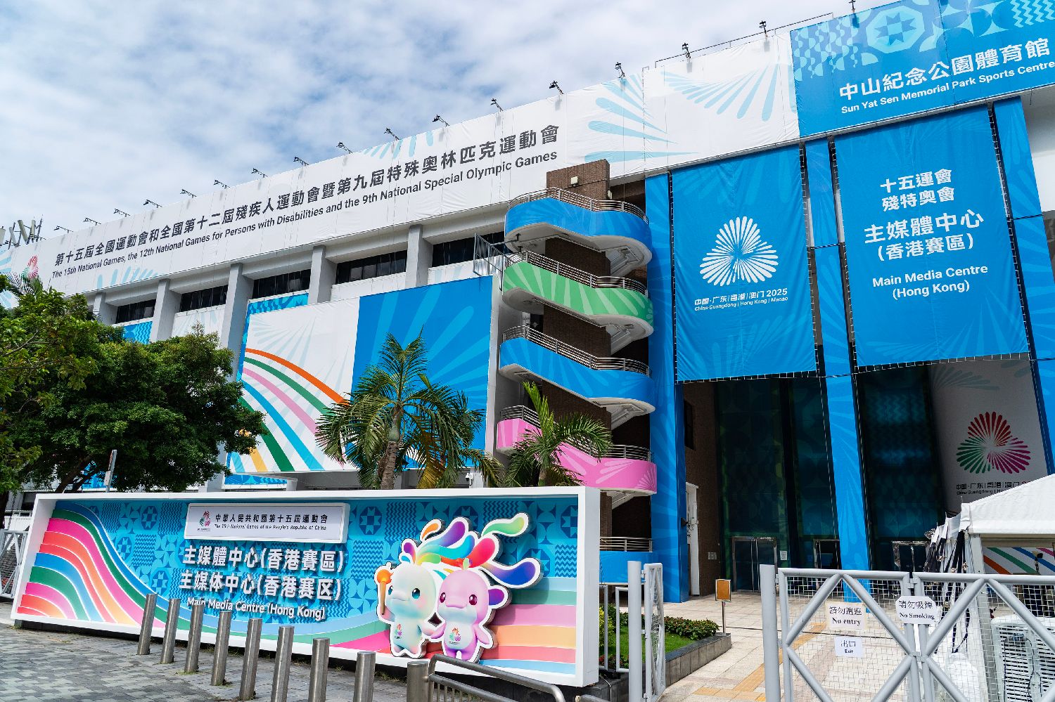 10月26日,第十五届全国运动会(十五运会)香港赛区主媒体中心正式启用。主媒体中心由中山纪念公园体育馆改造而成,内设主新闻中心与国际广播中心。图为主媒体中心的外景。中新社