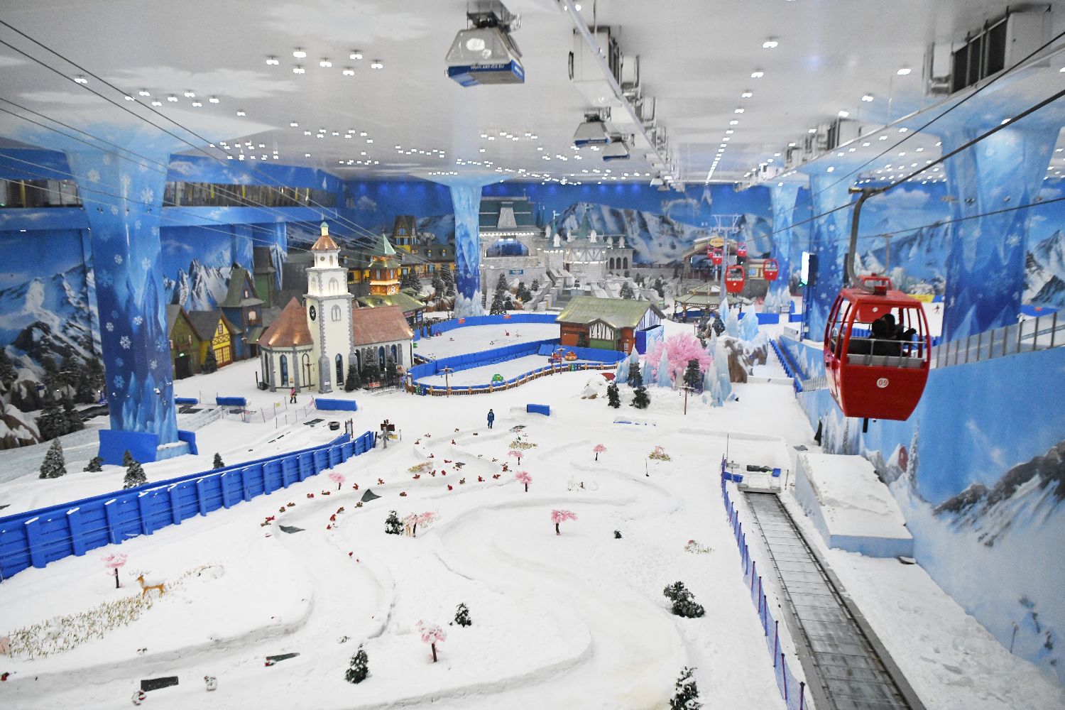 10月27日,“在长沙,感受活力中国——2025海外媒体星城探索之旅”采访团走进长沙湘江欢乐雪域,体验冰雪趣味。该冰雪乐园所在地曾是一个百米深坑,经改造,3万平方米的人造雪欢乐雪域悬挂于深坑之上,屋顶再建水乐园,既节约用地,又借水体为雪场节能保温。中新社