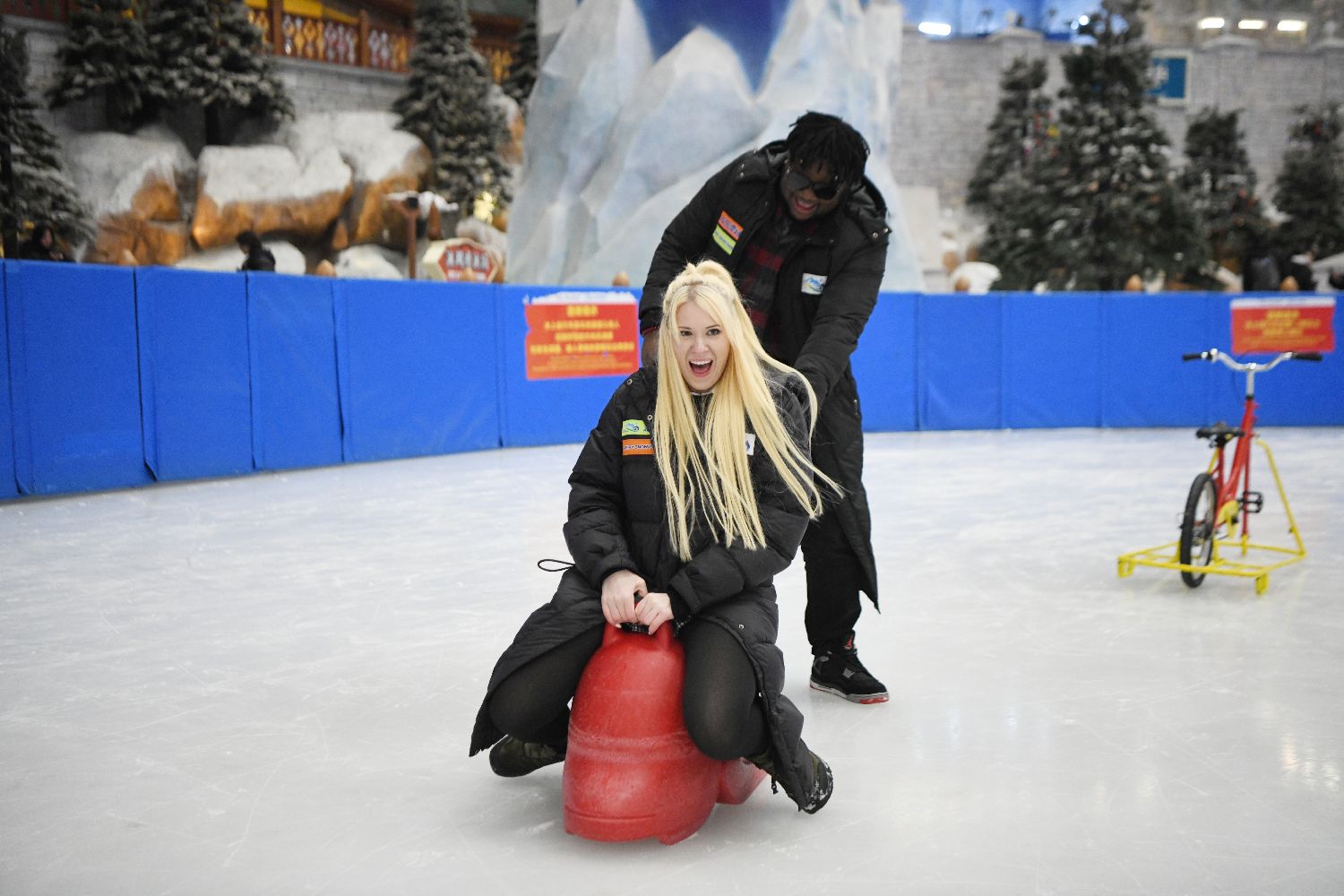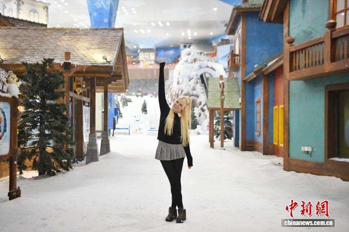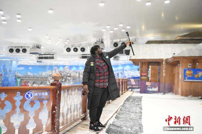 海外媒体代表在欢乐雪域打卡拍照。中新网