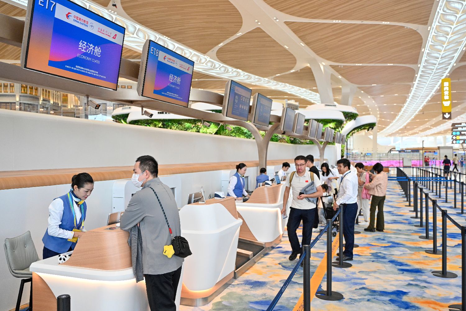 旅客在T3航站楼办理值机。中新社