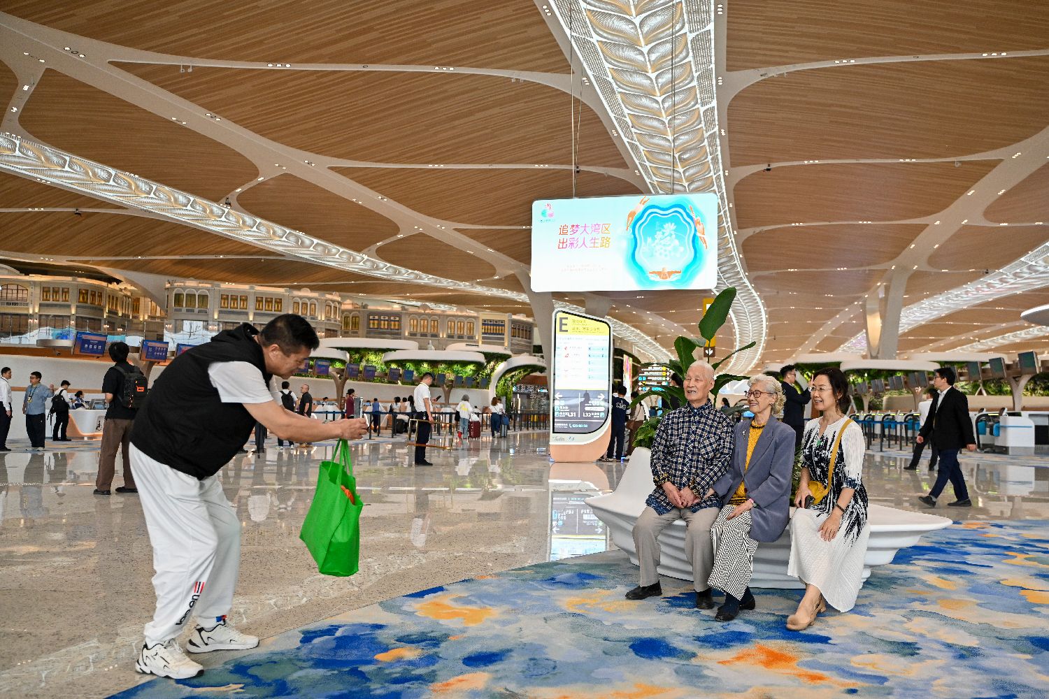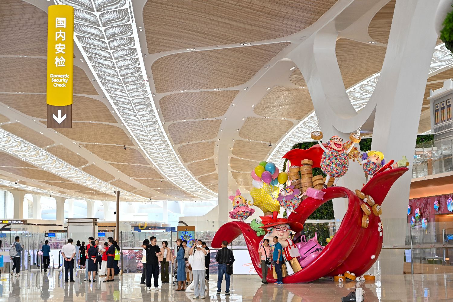 T3航站楼内的广州美食主题艺术装置吸引旅客。中新社