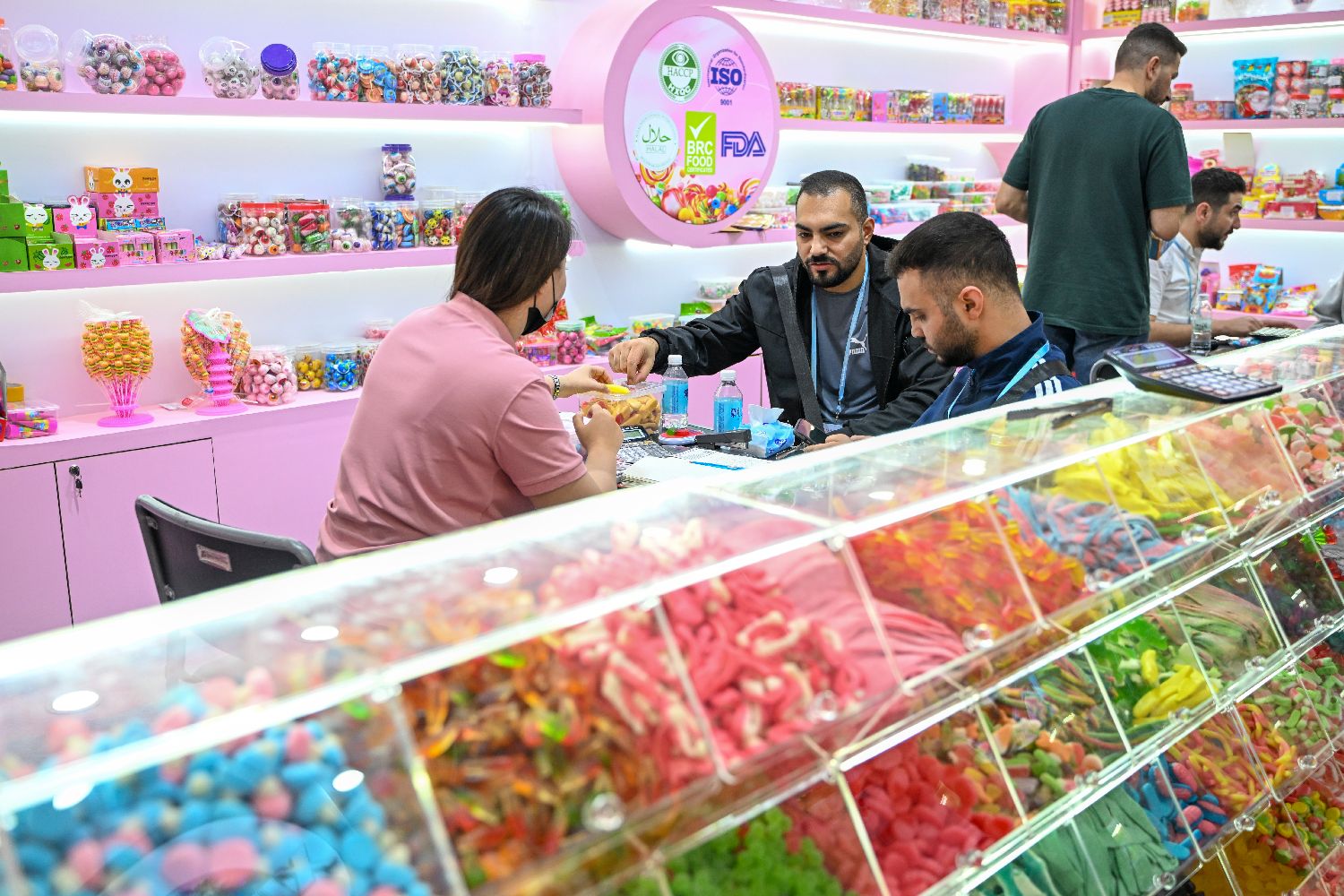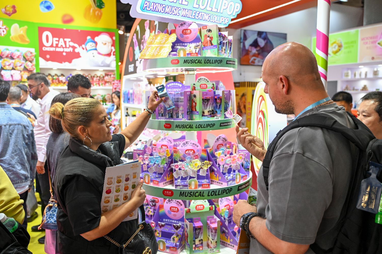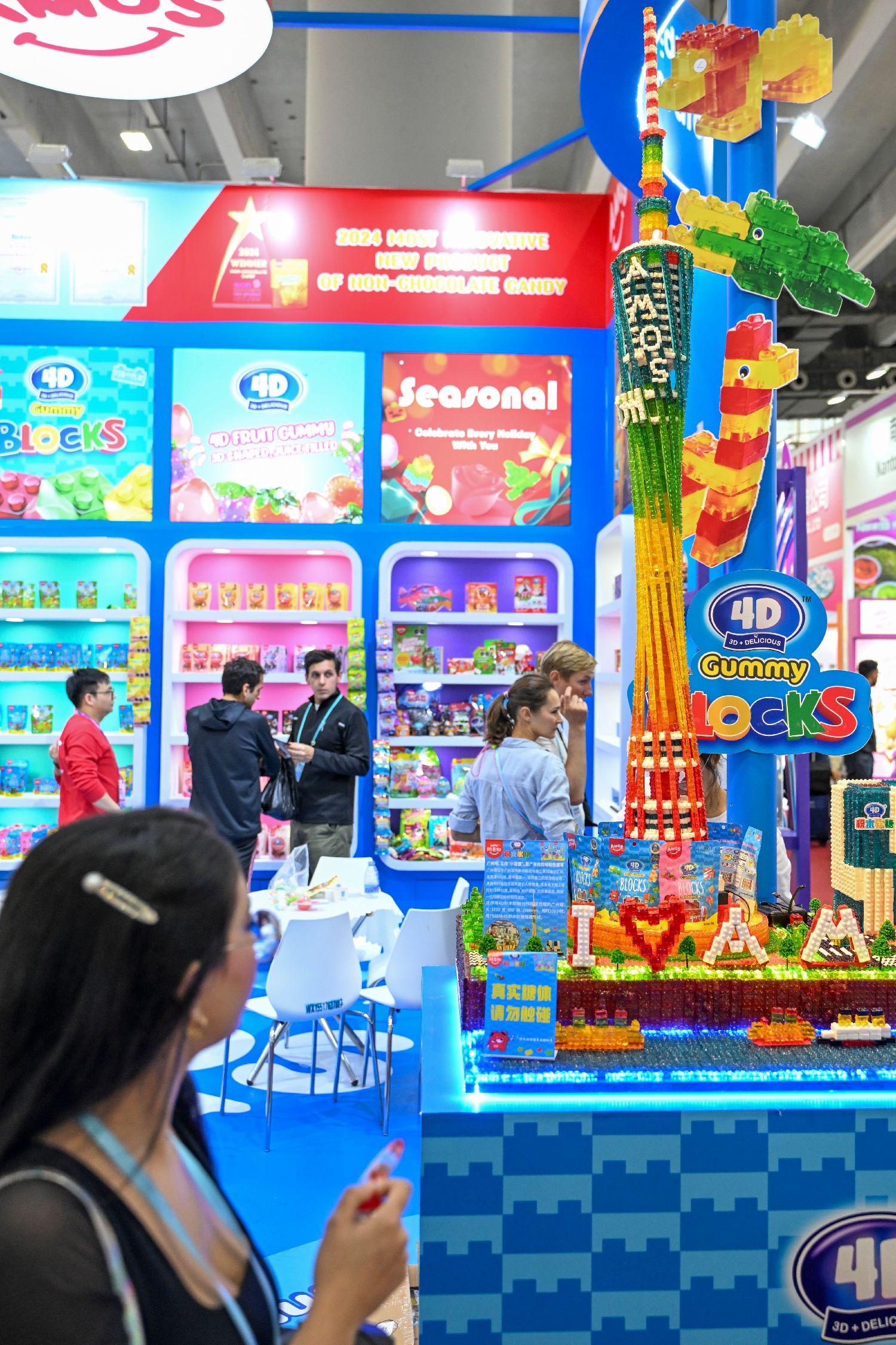 11月3日,广交会一食品参展商使用糖果搭建的广州城市地标模型吸引境外采购商。中新社