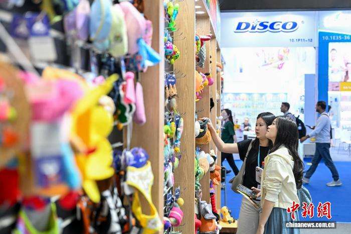 11月3日,境外采购商在广交会宠物用品展区挑选产品。中新网