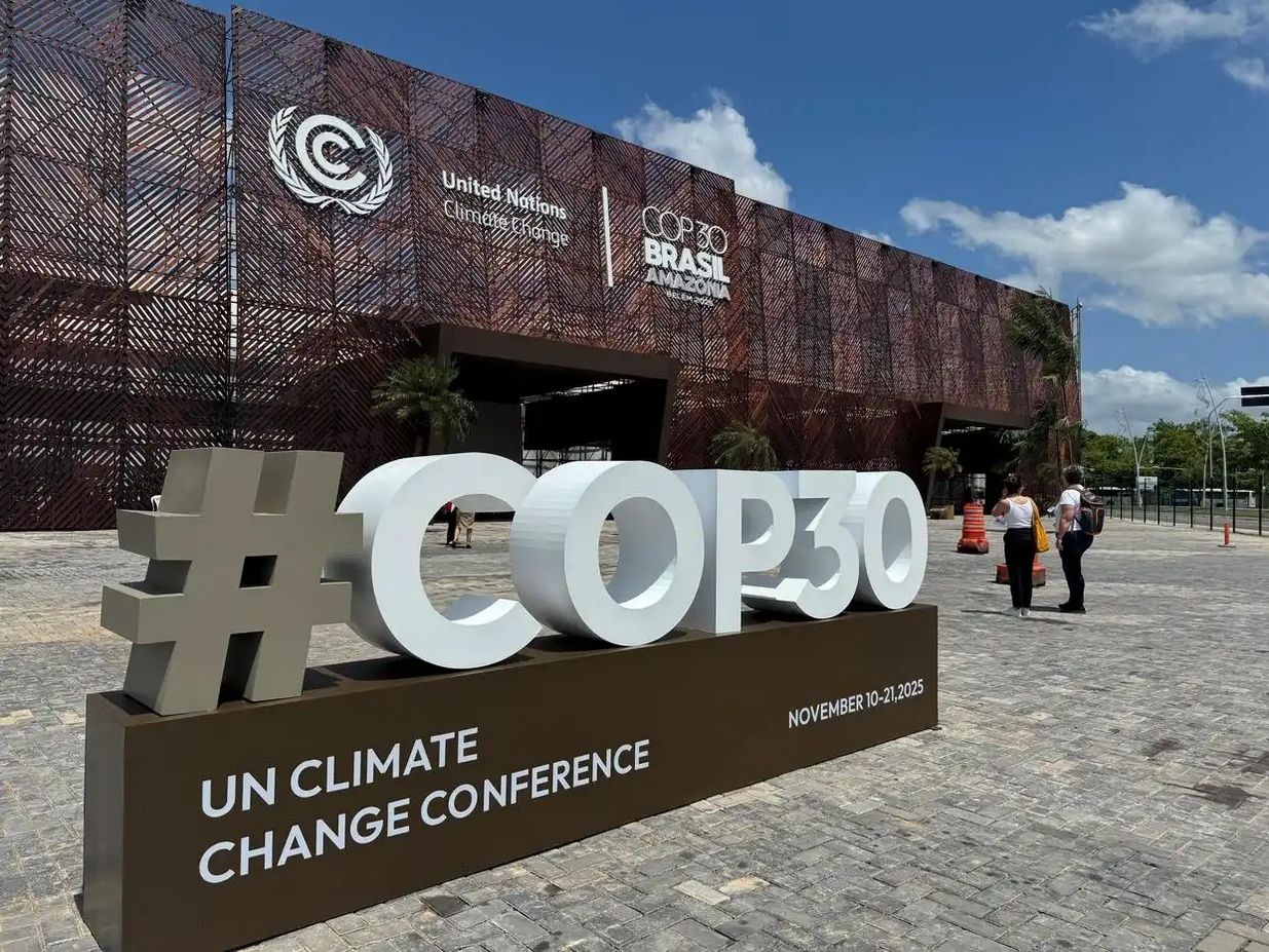 设置在贝伦城市公园的COP30标识。大陆央视新闻