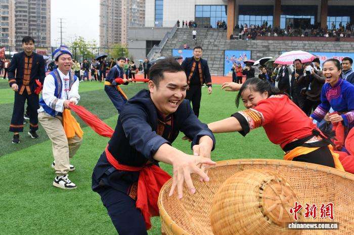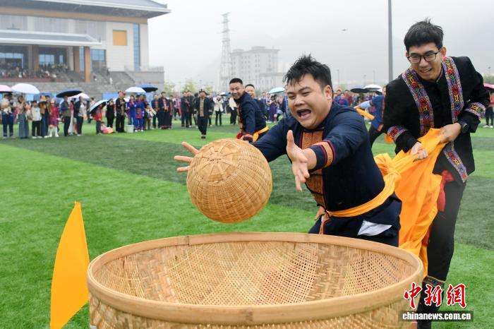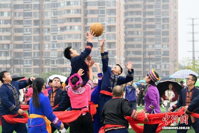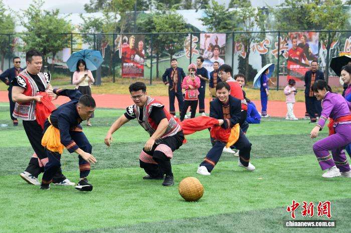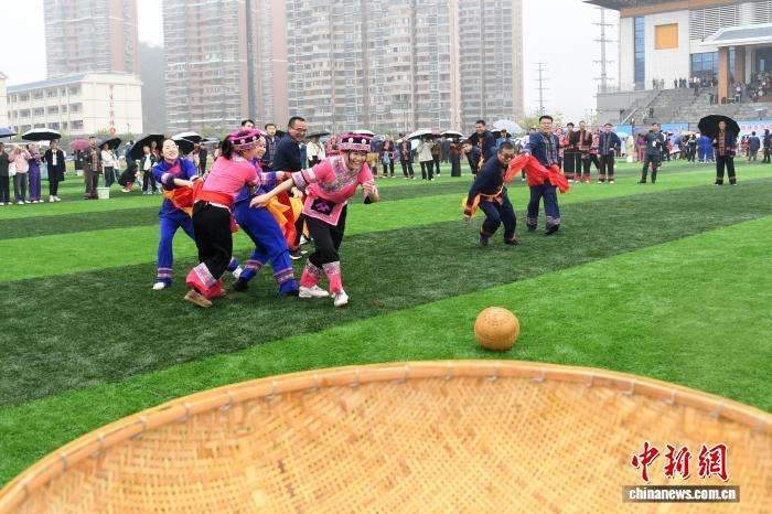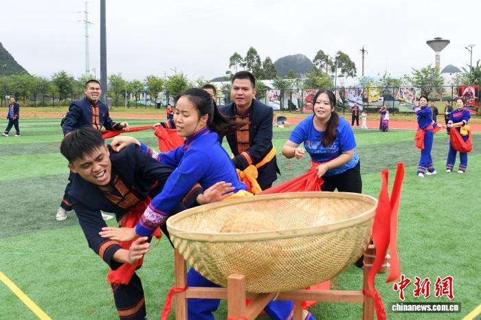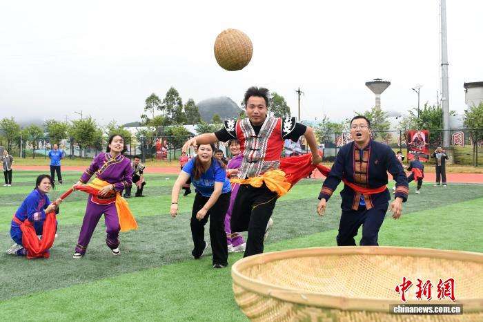 11月8日,广西河池市罗城仫佬族自治县体育中心举行竹球竞技赛,民众在运动中体验快乐,传承民族传统体育文化,共同庆祝仫佬族传统节日依饭节。竹球也称“篾球”,球由竹子编制而成,这是流行于当地的民族传统体育项目。图为当日,竹球竞技赛现场。