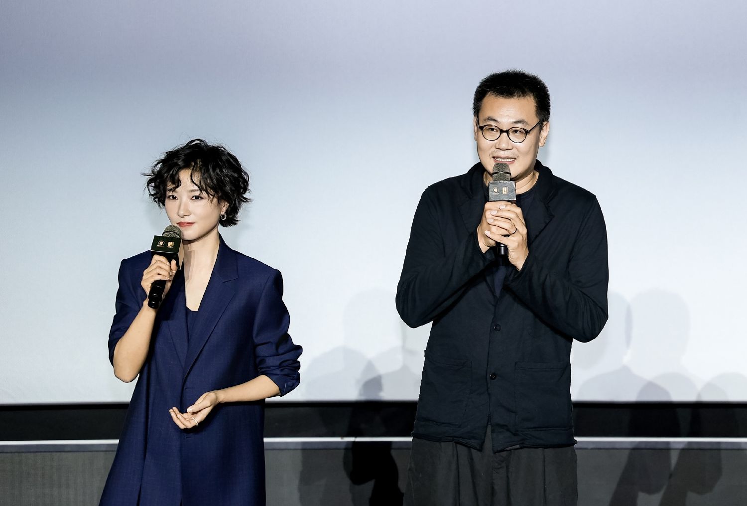 11月11日,影片《长夜将尽》亮相开幕式,导演王通(右)、主演万茜与影迷们分享创作故事。中新社