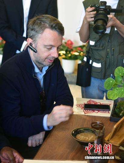 驻华使节点茶画出“福”字。中新网