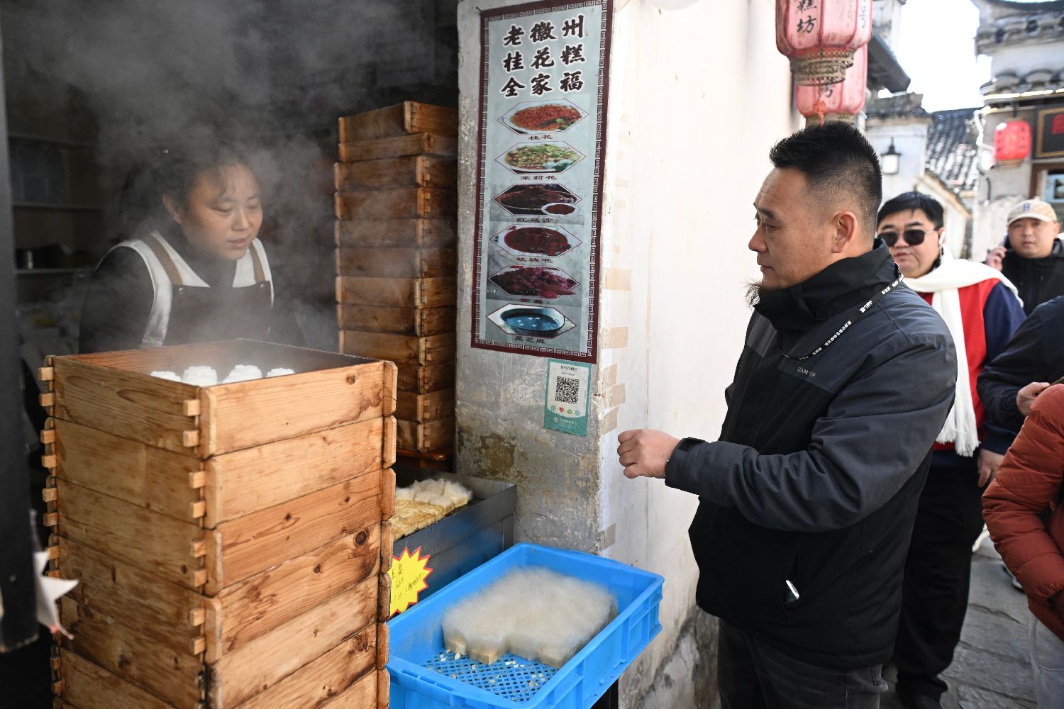 华文媒体代表了解毛豆腐制作技艺。中新社