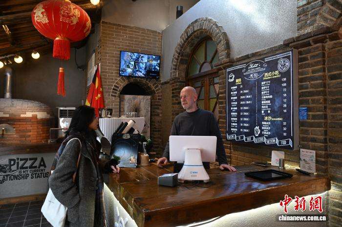 华文媒体代表走进宏村,与咖啡店主理人阿明(Armin)交流。中新网