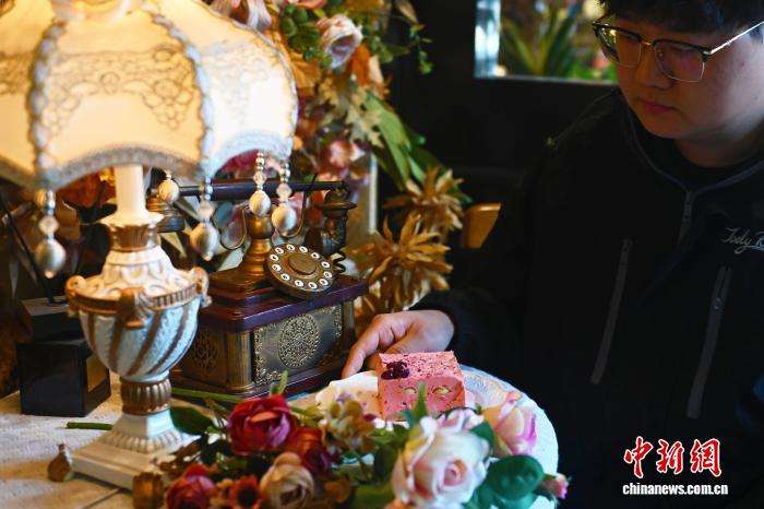11月20日,李懿航展示其门店所推出的苦水玫瑰提拉米苏。中新网