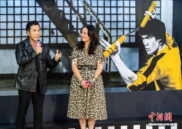 李小龙基金会创办人兼会长、李小龙之女李香凝(Shannon Lee,右)和动作影视明星甄子丹在揭幕仪式上回答提问。中新网