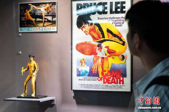 一位女士在李小龙的巨幅海报前拍照留念。中新网