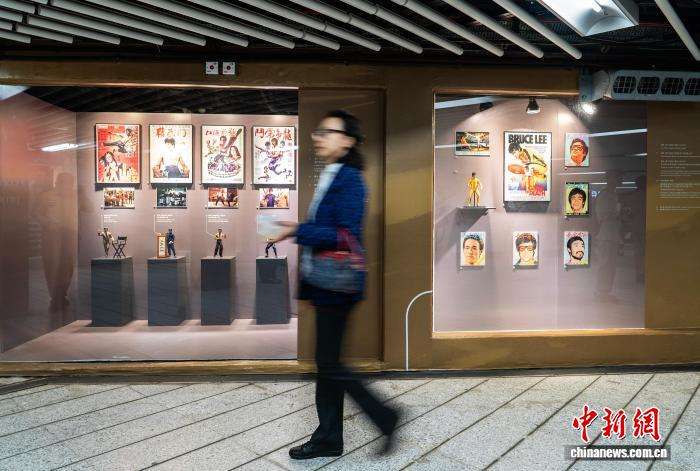 市民在港铁中环站内的特展区域参观电影海报、人偶模型等展品。中新网